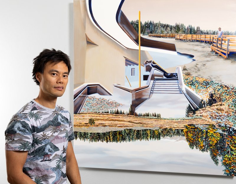 Kevin Chin’s practice has long drawn together fragments from disparate places and histories. In From The Ruins, European references extend this trajectory: ancient ruins collide with futuristic structures, while desert landscapes and Tuscan light intermingle with traces of Rome. These works consider how distant events ripple across borders, shaping the interconnected realities of contemporary life.